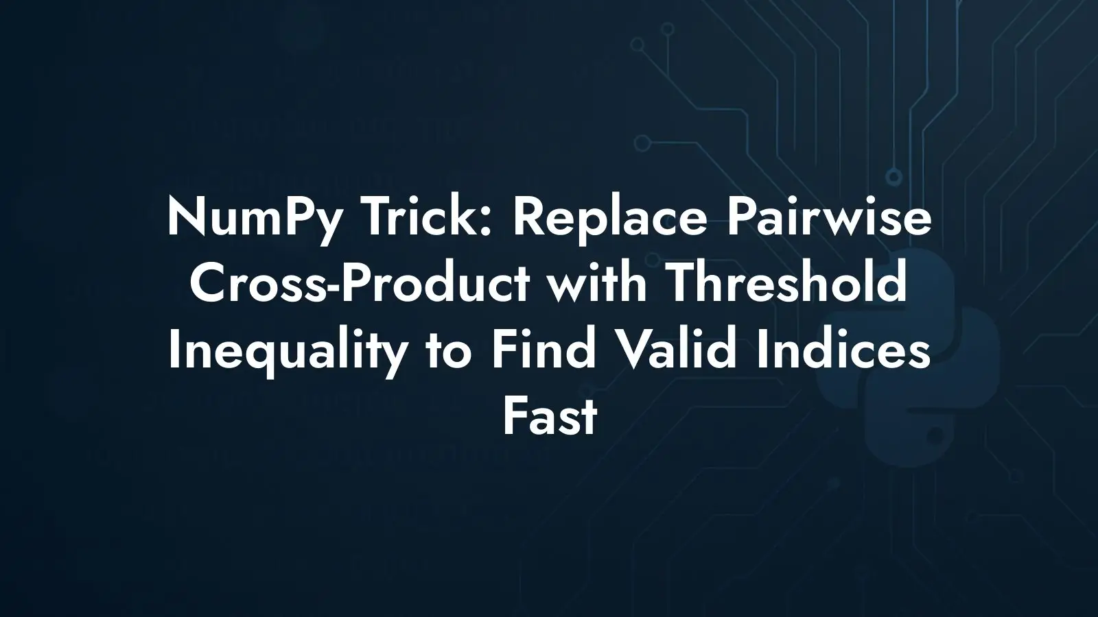Speed up pairwise checks in NumPy: replace the cross-product with a threshold inequality. Vectorized comparisons mark valid indices using extrema. Faster.