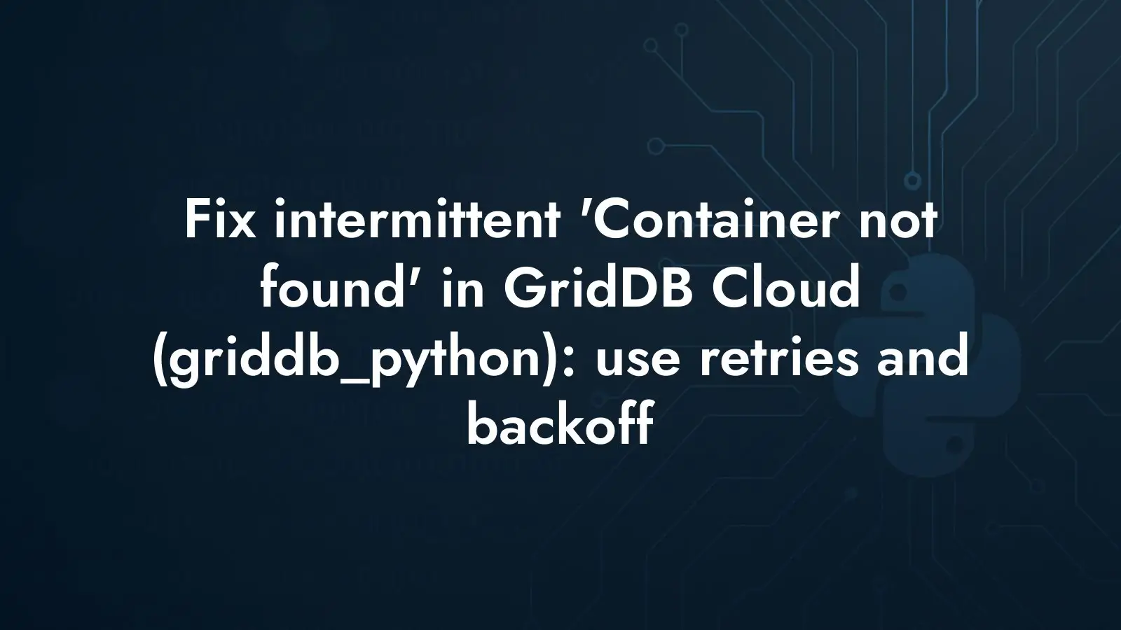 Intermittent 'Container not found' in GridDB Cloud using griddb_python? Understand metadata propagation GSException and fix with short wait, retries, backoff.