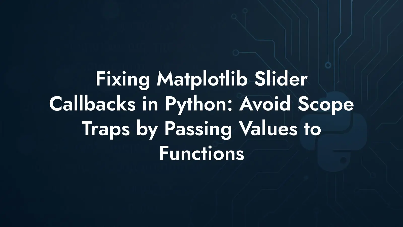 Learn why the Matplotlib Slider in Python freezes when callbacks split across functions, and how to fix scope bugs by passing values explicitly. Clear example.