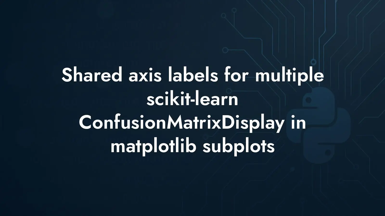 If you want shared axis labels for multiple ConfusionMatrixDisplay plots, let each panel draw the confusion matrix, then remove local x and y labels and add global ones with fig.supxlabel and fig.supylabel. For label sizes, prefer per-axes adjustments like tick_params after plotting. This produces clean, comparable confusion matrices without duplicated labels and with typography under control.