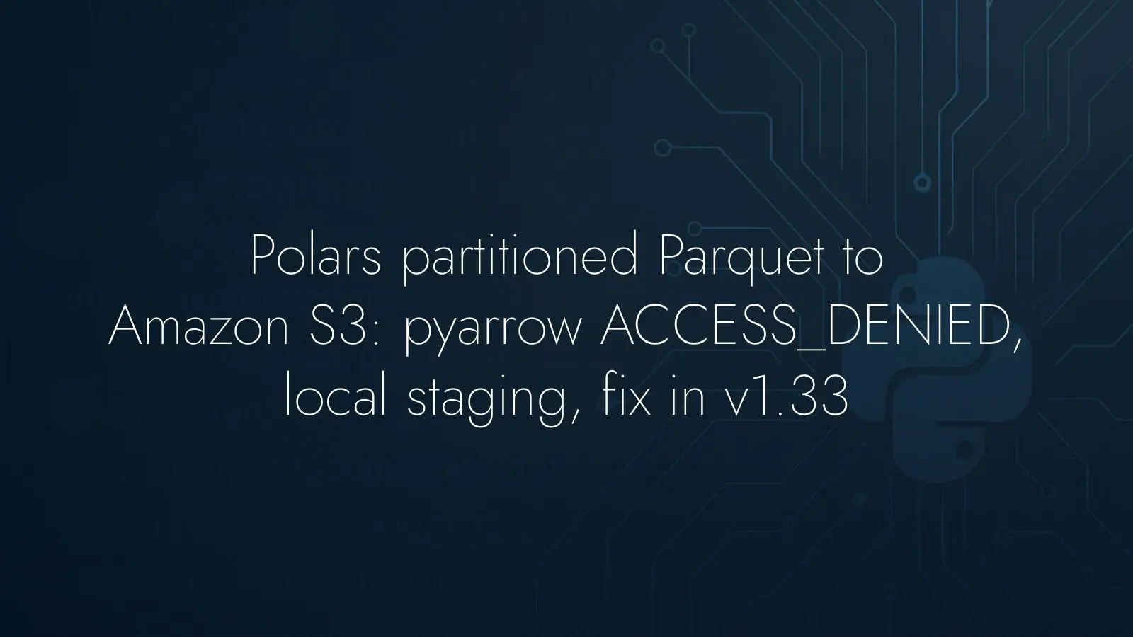 Learn why partitioned Parquet writes to Amazon S3 failed in polars (pyarrow ACCESS_DENIED, local staging) and how v1.33 fixes write_parquet and sink_parquet.