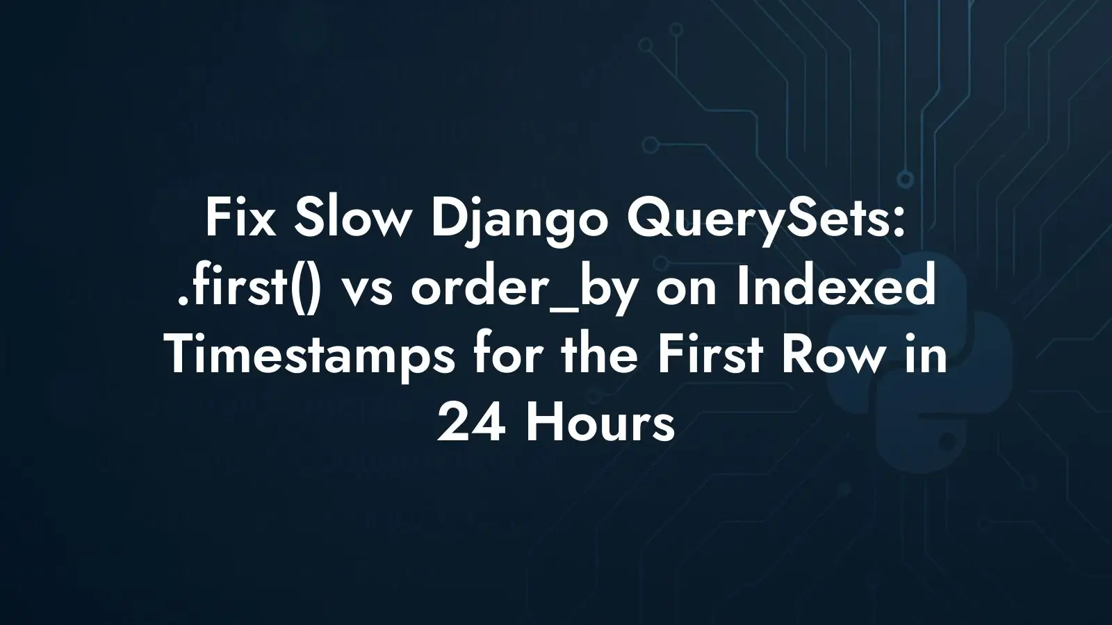 Django queryset performance often looks straightforward until a subtle default kicks in. A common case: a fast-growing table receives new rows every few seconds, and you need the first row from the past 24 hours. The query feels simple, yet it takes seconds with .first() or Min('id'), while other approaches are instant. The difference comes from implicit ordering and how the database uses available indexes.