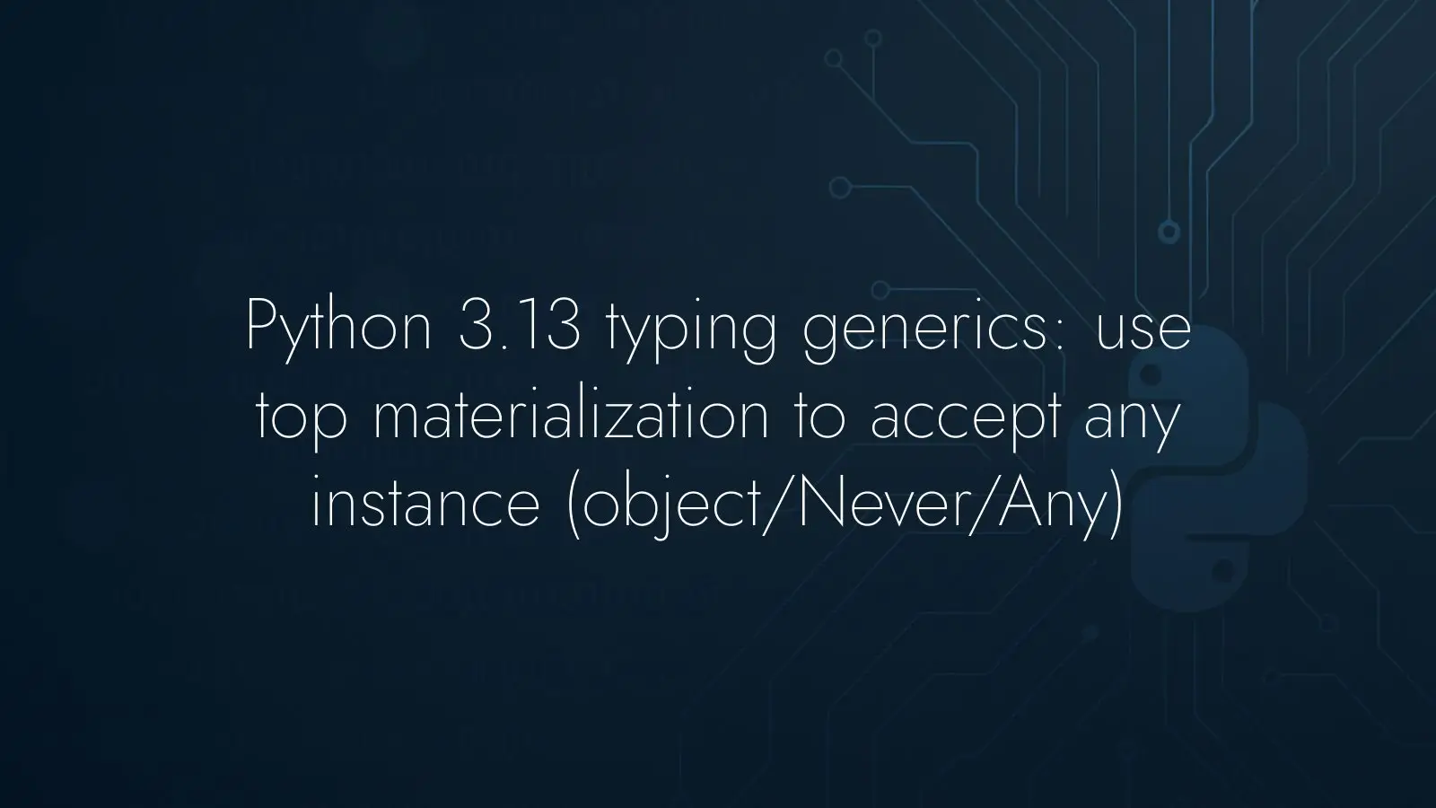 Typing a method that accepts any instance of a generic class often looks deceptively simple until variance gets involved. In Python 3.13, using the new generic syntax, the straightforward idea “take any Foo[T], I don’t care which T” quickly collides with type-checker expectations, especially in tools like basedpyright. The question is how to express this intention without spamming Any or over-parameterizing the function signature.