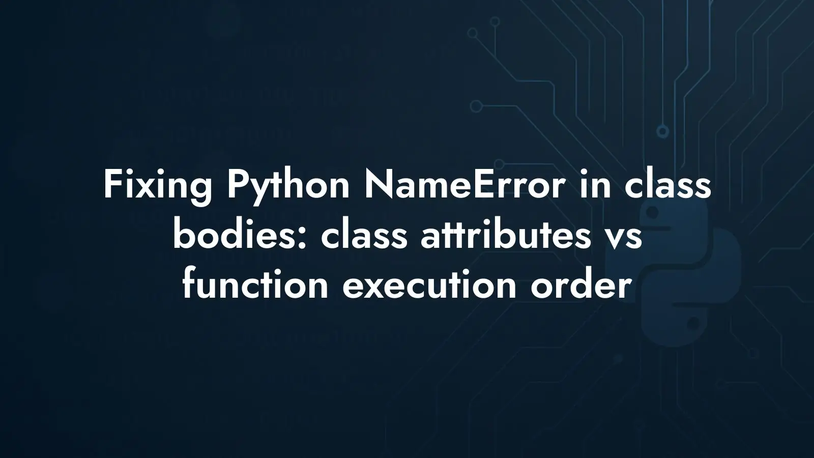 Order of execution is exactly what matters here, but not in the simplistic “define before use” sense. Class bodies execute at definition time; function bodies execute at call time. If a helper needs the class, don’t call it from the class body before the class exists. Either compute the attribute after the class statement, compute it per instance in __init__, or initialize it lazily the first time the class is instantiated. Pick the pattern that matches when and where the value should live, and the NameError goes away.