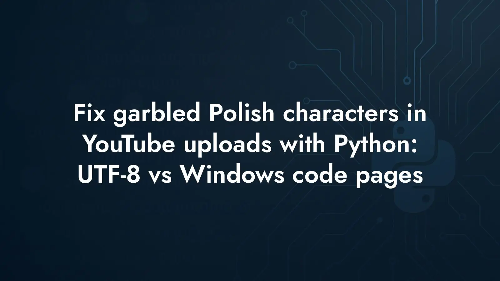 When uploading a YouTube video via the official Python sample, non‑ASCII characters in title and description may arrive garbled. Polish diacritics, for example, end up as strange glyphs. The payload is supposed to be UTF‑8, but the text you pass from the terminal can be in a different code page, and that mismatch corrupts characters on the way in.