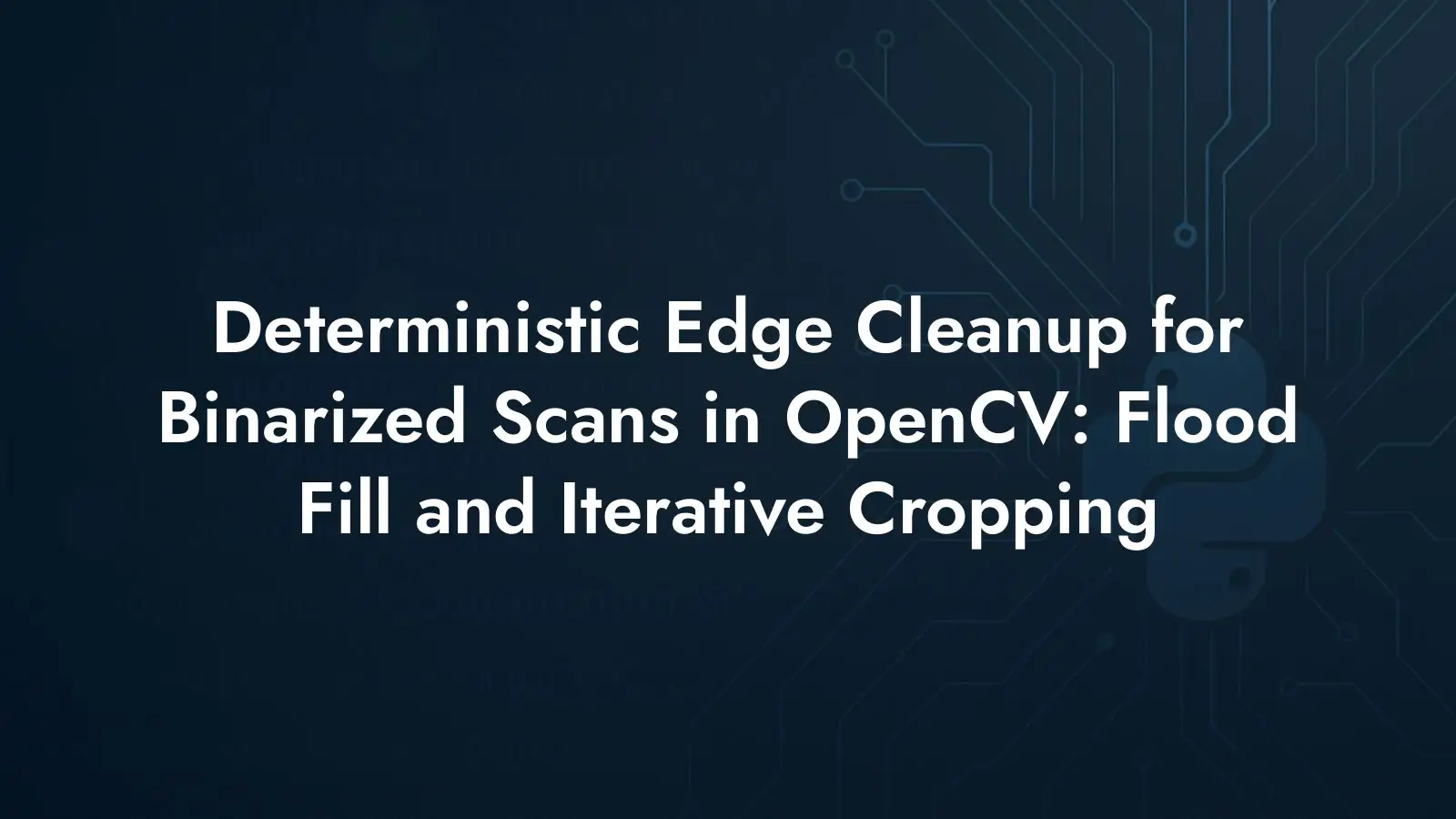 Scanned music and book pages often arrive already binarized, but the edges are messy: streaks, speckles, and half-connected marks hugging the border. A simple flood fill from a corner after adding a solid frame helps, yet residual artifacts and occasional over-trimming still happen. Below is a practical way to make that edge cleanup deterministic and robust with OpenCV, while keeping musical notation and text intact.