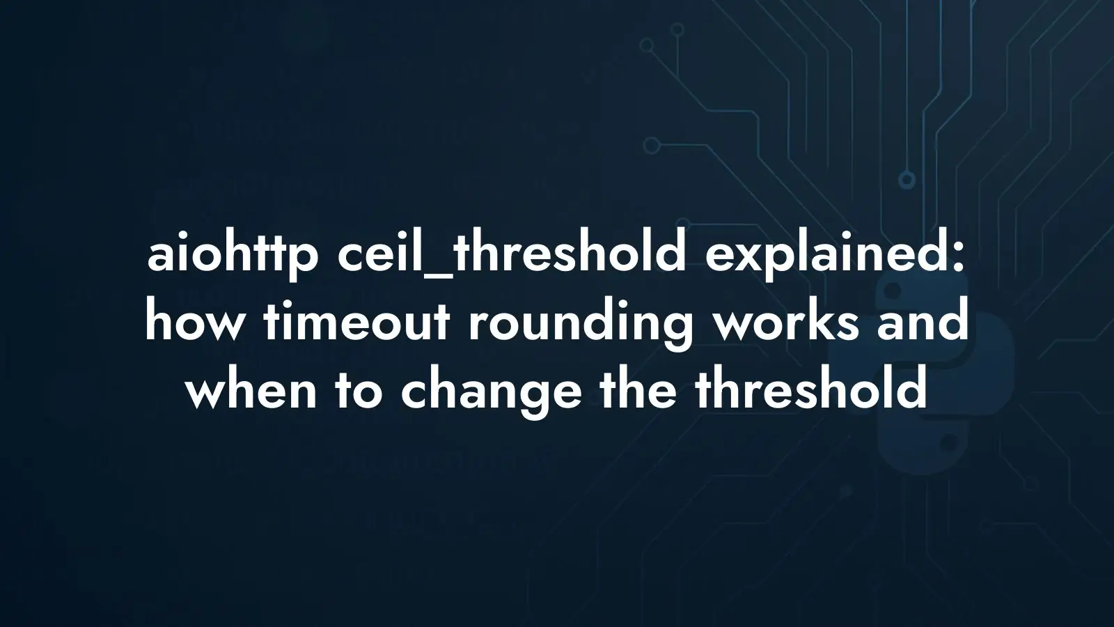 In practice this means the following. aiohttp rounds the timeout’s wake-up moment up to the next whole second, but only for timeouts that are equal to or greater than the configured threshold. If a timeout is less than ceil_threshold, it won’t be rounded. The default threshold is 5 seconds; you can raise or lower it with ceil_threshold.