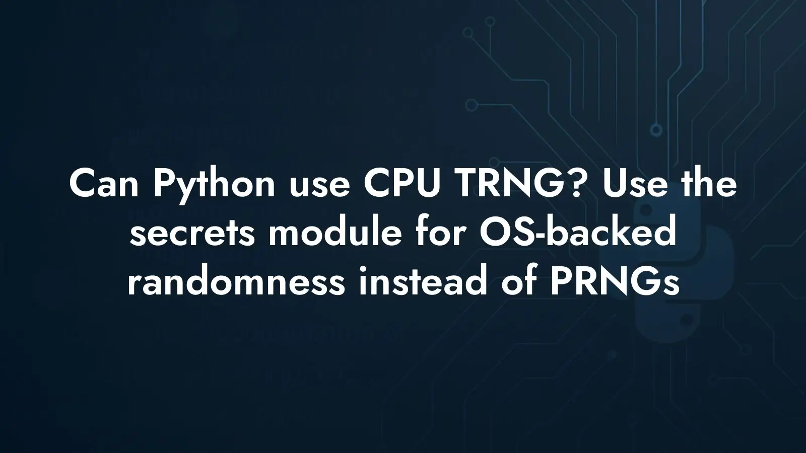 For Python developers the actionable guidance is straightforward: use secrets when you need cryptographic-quality random values. It gives you the strongest randomness your platform offers without tying your code to a particular CPU instruction or kernel configuration.