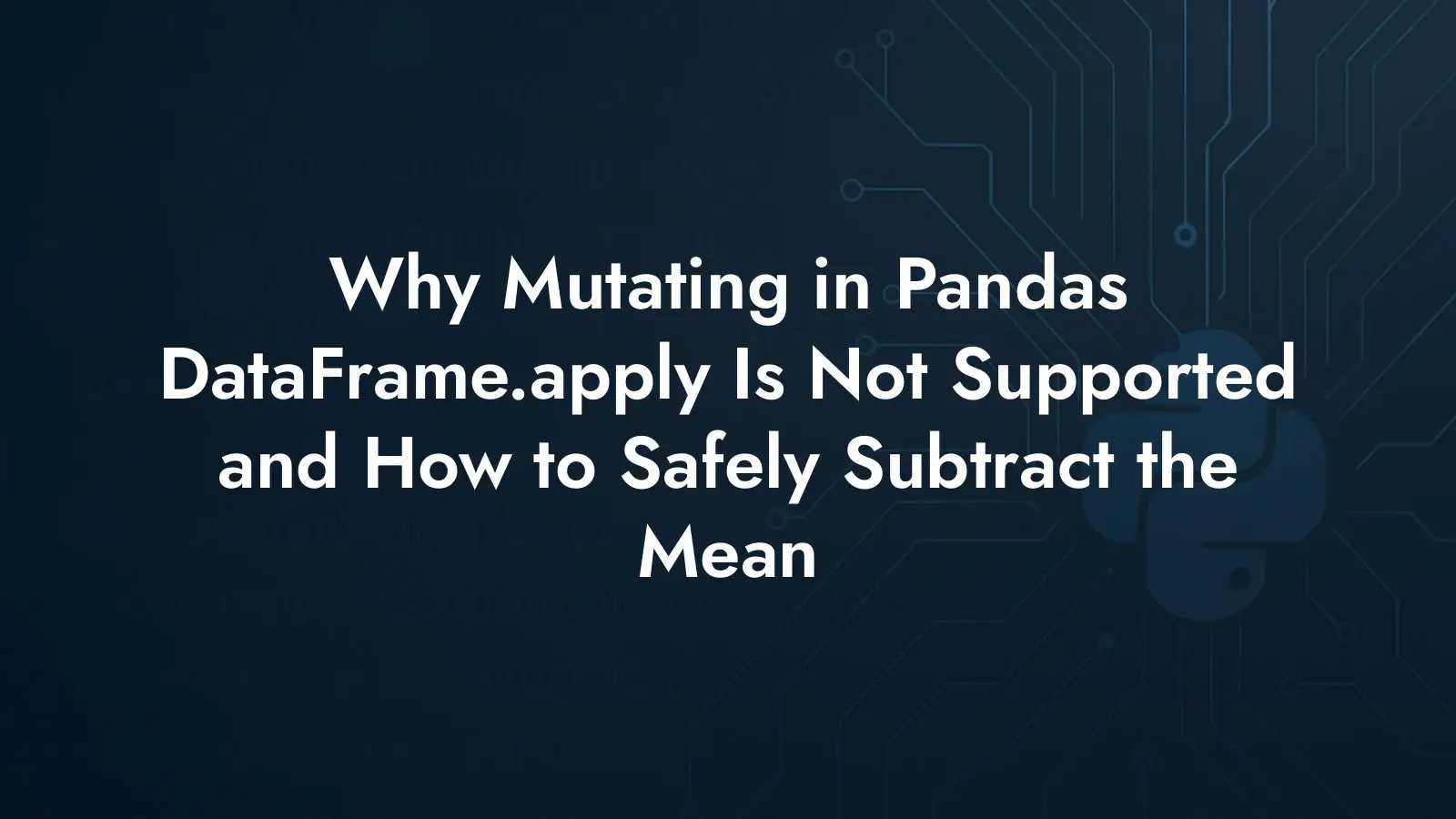 Learn why mutating rows inside Pandas DataFrame.apply is not supported and how to reliably subtract a column mean using vectorized operations for fast code.