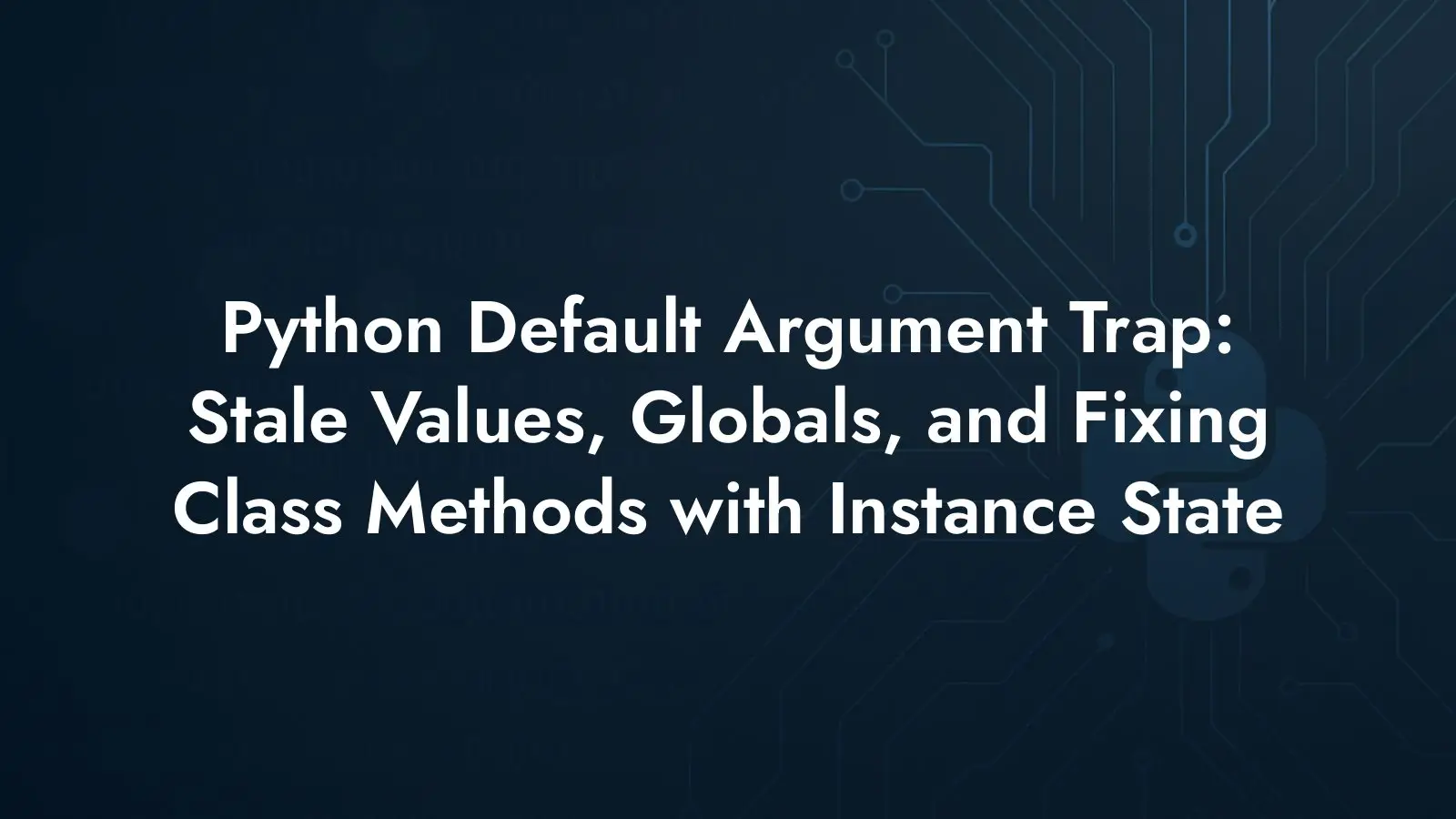 Learn why Python default arguments capture stale values, how globals and class calls worsen it, and how to fix with instance state and a None sentinel override.