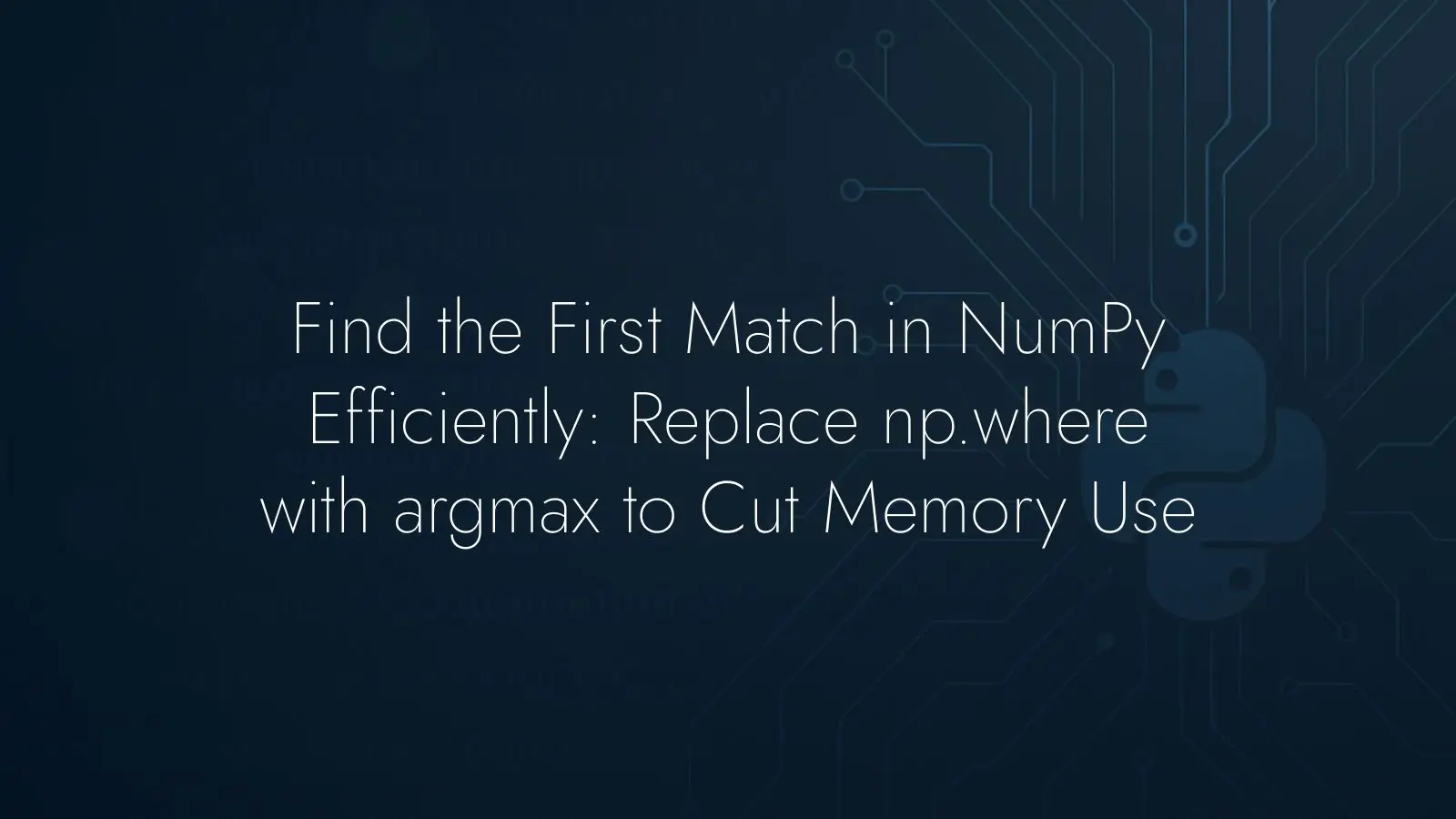Learn why np.where wastes memory on large arrays and how argmax finds the first match faster in NumPy. Get a clear pattern with a validation check inside.