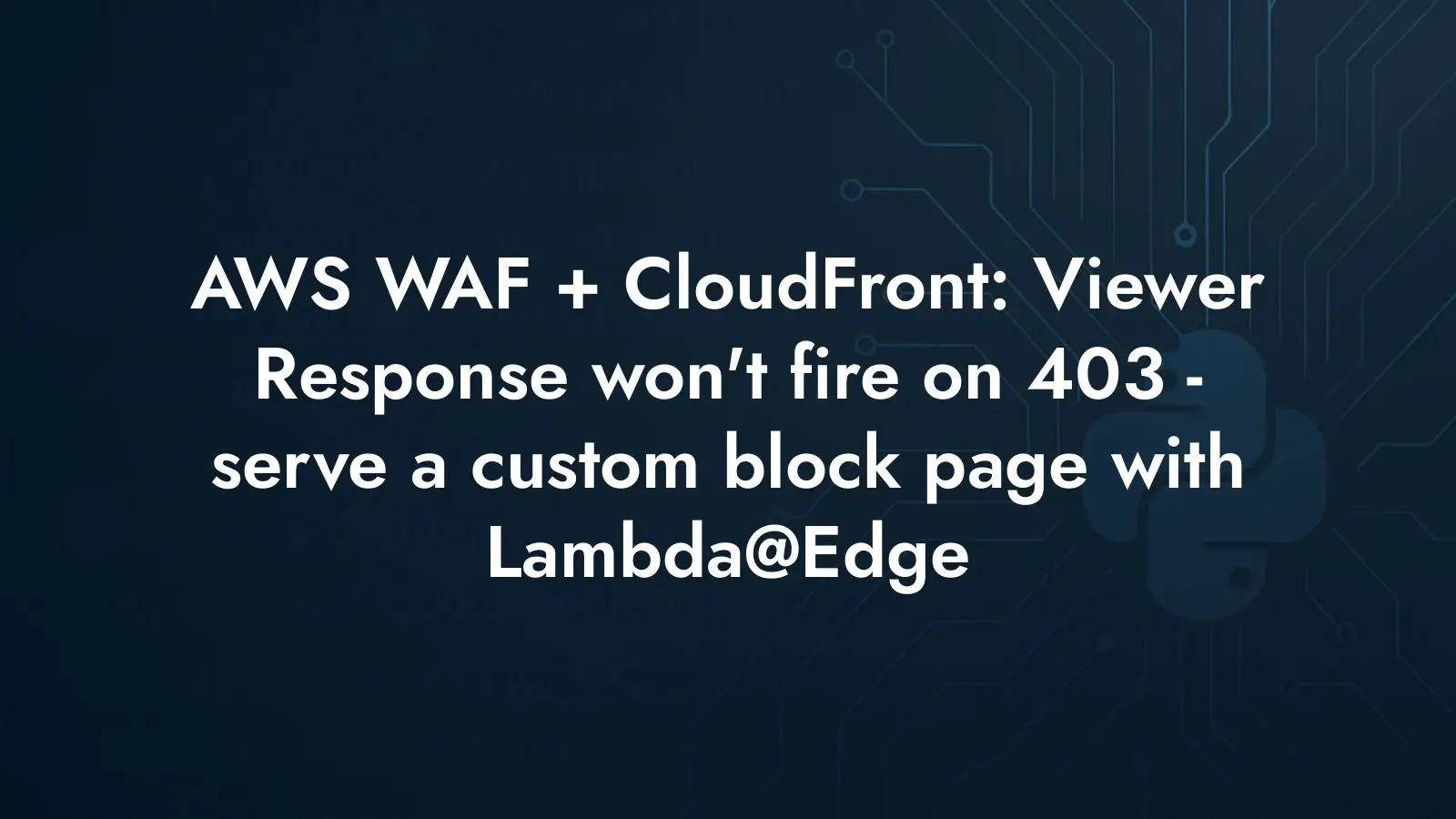 When you combine AWS WAF with CloudFront and try to customize the user-facing response using Lambda@Edge, it’s tempting to hook into the Viewer Response event and rewrite the body on a 403. In practice, that won’t fire the way you expect. If you’re seeing the default 403 from WAF and your Lambda@Edge function never runs, you’re bumping into how CloudFront events are triggered for error responses.