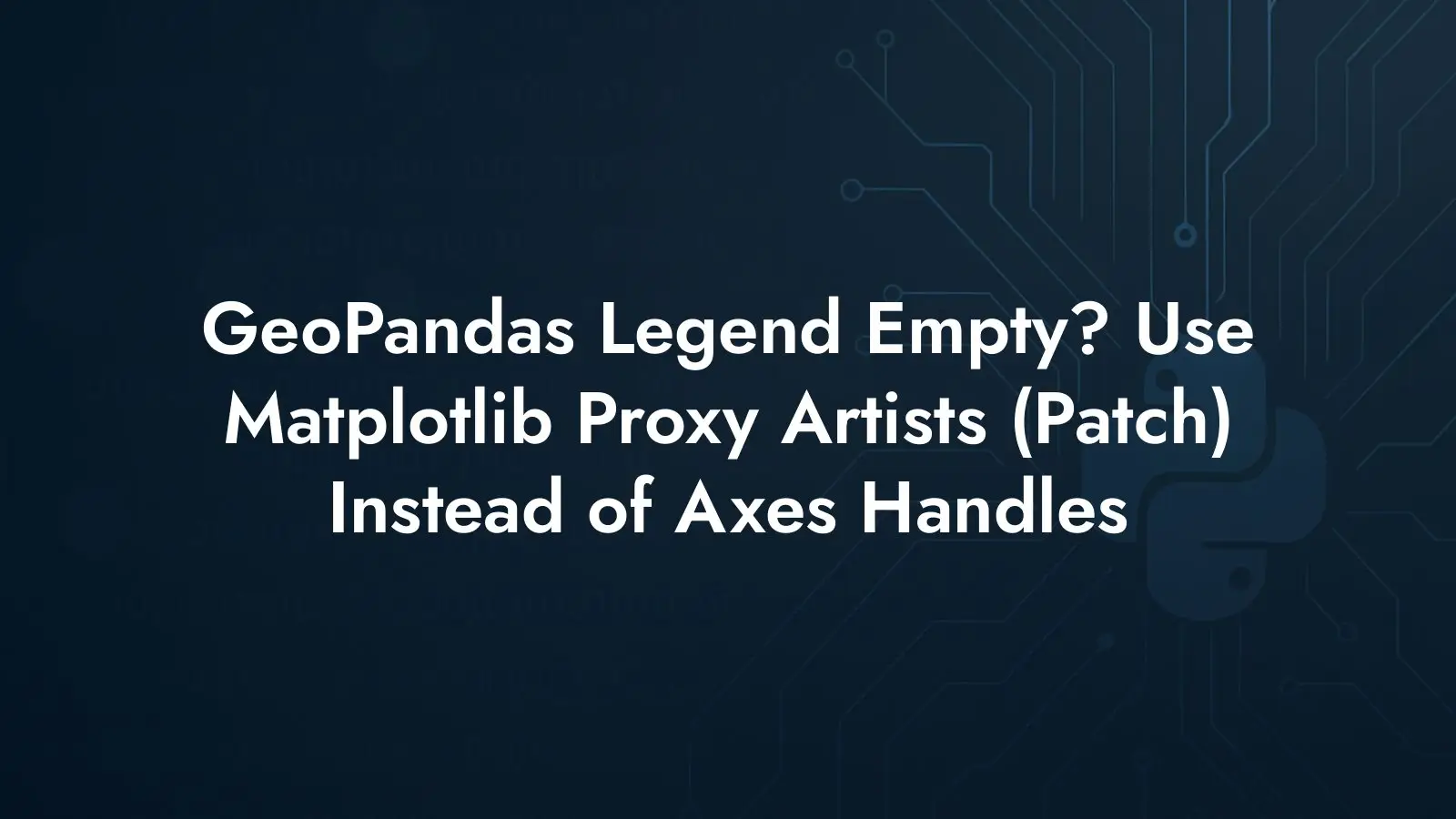 Learn why GeoPandas plots return Axes, not legend handles, and how to fix empty legends with Matplotlib proxy artists (Patch). Step-by-step code and layout tips
