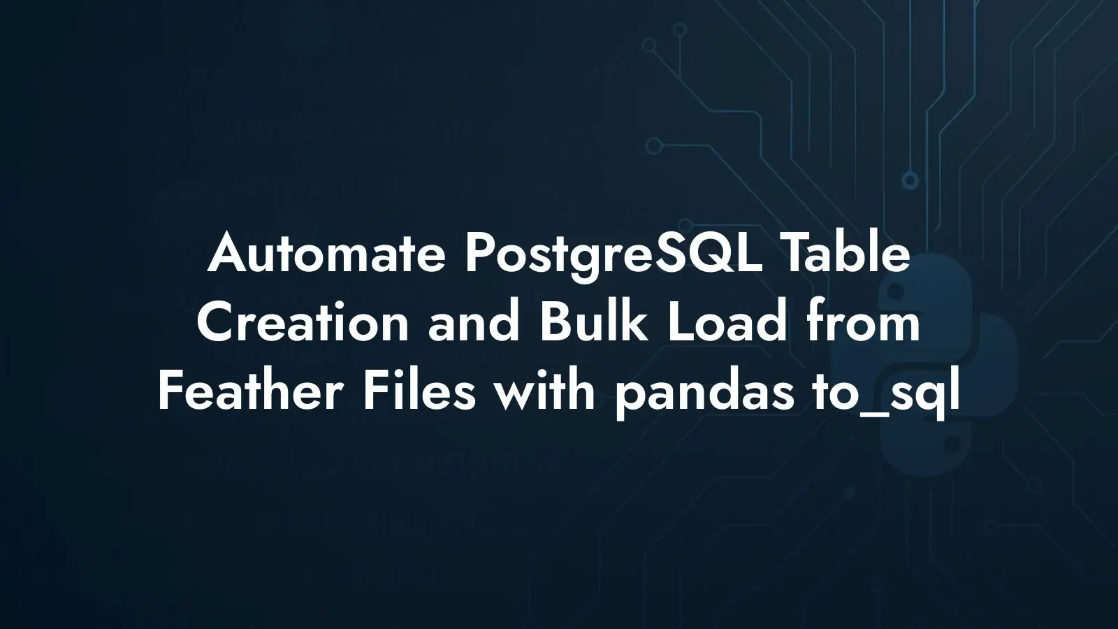 Learn how to skip manual DDL: use pandas DataFrame.to_sql and SQLAlchemy to create PostgreSQL tables and bulk load data from Feather files quickly and reliably.