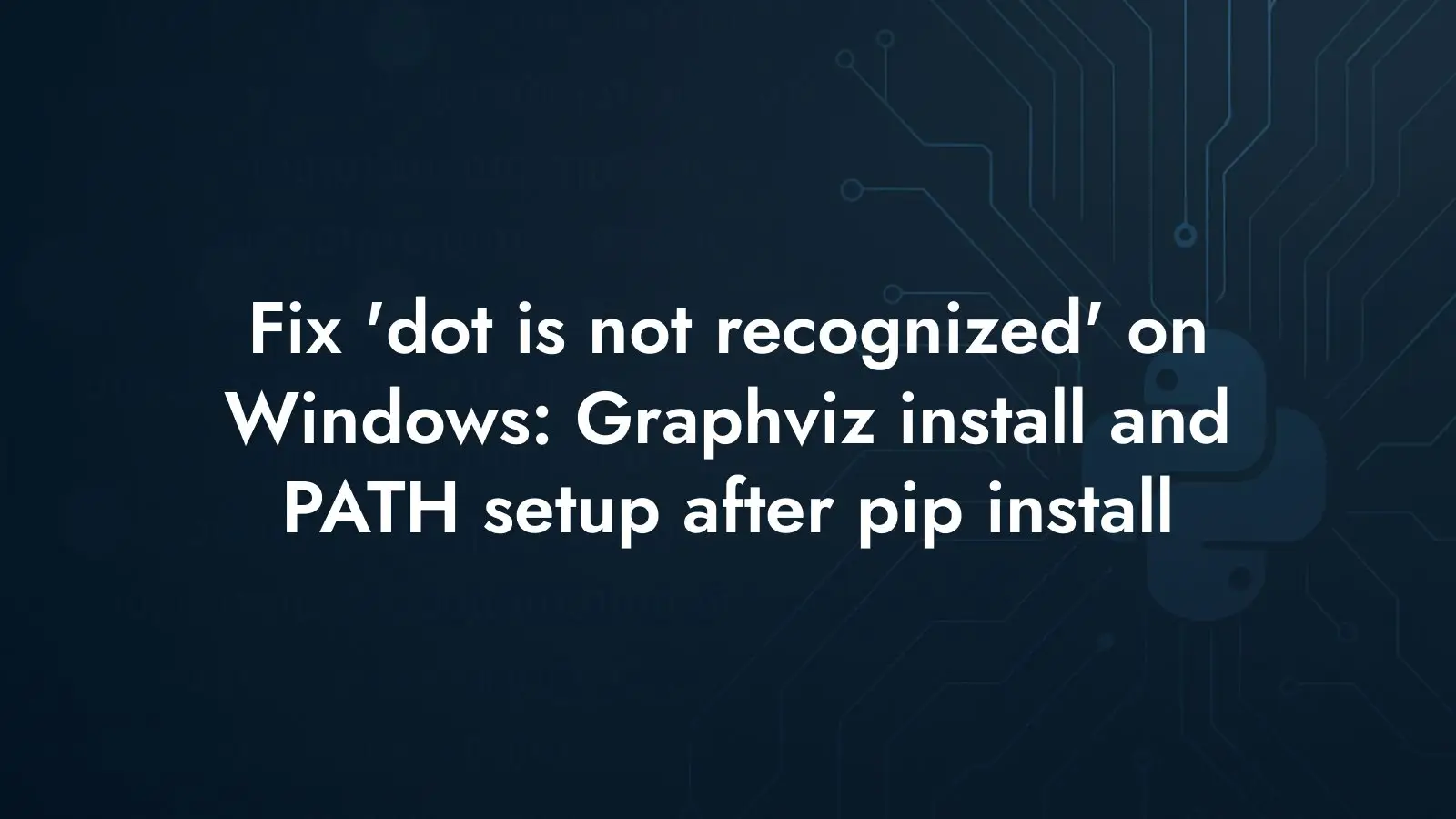 Seeing 'dot is not recognized' after pip install graphviz on Windows? Install Graphviz binaries, add bin to PATH, restart the terminal, confirm with dot -v.