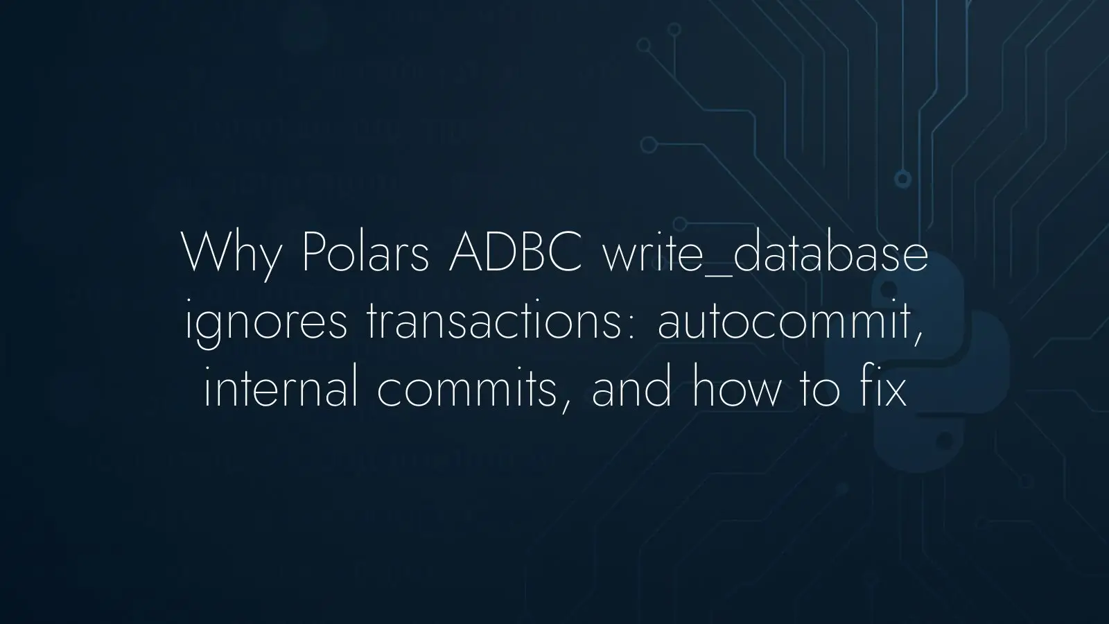 Learn why Polars with engine='adbc' commits during write_database, how autocommit really works, and how to get proper transaction control using SQLAlchemy.