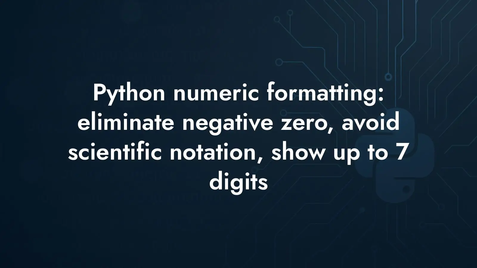 Learn a simple Python numeric formatting trick to round to 7 digits, remove negative zero, and avoid scientific notation. Normalize output for logs and tests.