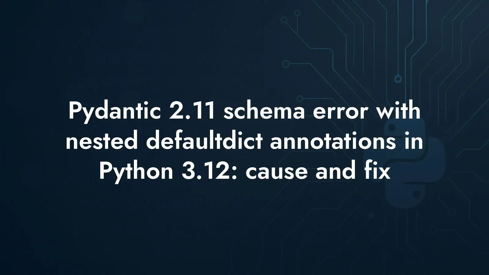 Learn how to fix Pydantic 2.11 schema errors from nested defaultdict annotations in Python 3.12: use Dict annotations and a defaultdict default_factory.