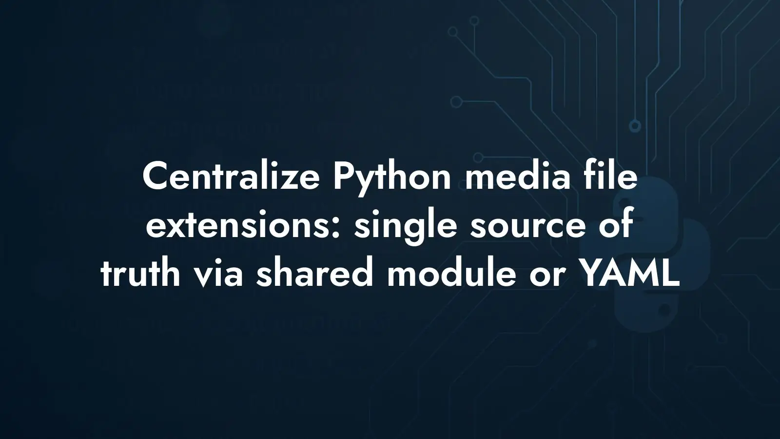 Learn how to centralize Python media file extensions with a single source of truth: compare a shared module vs a YAML configuration, with code to scan dirs.