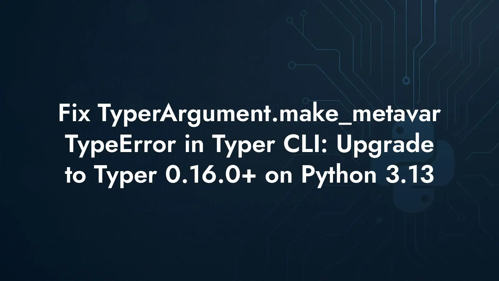 Getting TyperArgument.make_metavar TypeError in a Typer CLI on Python 3.13? Pin or upgrade Typer to 0.16.0+ to fix Click incompatibility and restore output.