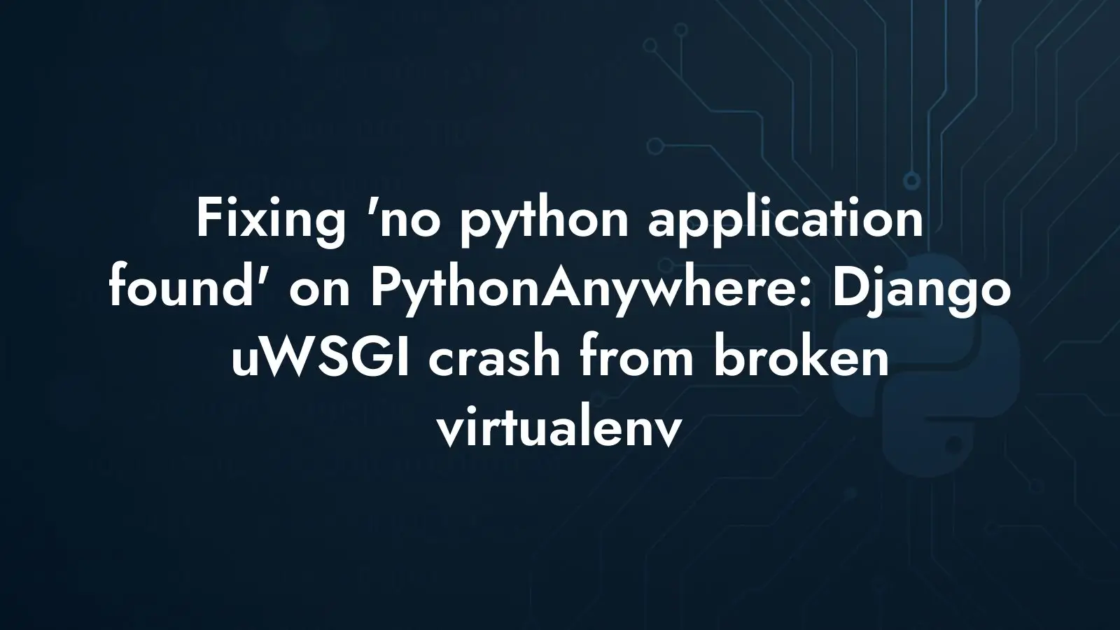 Troubleshoot Django on PythonAnywhere when uWSGI shows 'no python application found'. Resolve stdlib import errors from a broken virtualenv by rebuilding.