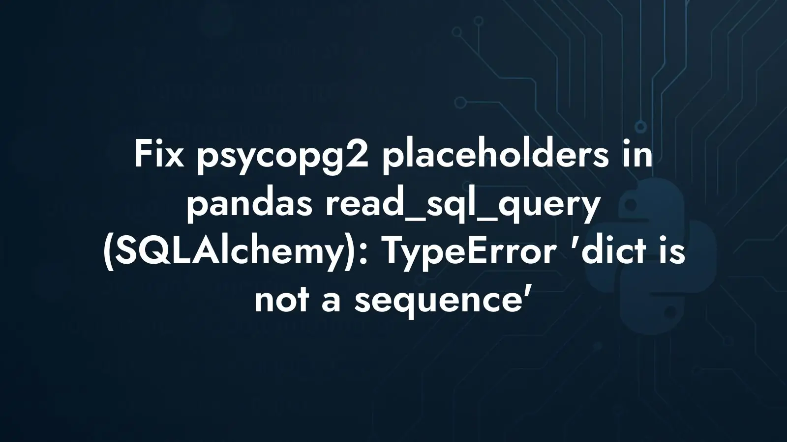 Learn why pandas read_sql_query with SQLAlchemy and psycopg2 raises TypeError 'dict is not a sequence' in PostgreSQL, and how %(name)s placeholders fix it.
