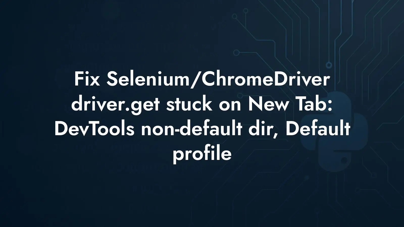 ChromeDriver (version 113 and newer, as distributed via Chrome for Testing) places guardrails around regular Chrome profiles. When you pass --user-data-dir that points at Chrome’s real Default profile and pair it with --profile-directory, DevTools may not attach fully. As a result, Selenium commands that rely on the DevTools protocol, such as driver.get(), may not take effect and the browser stays on the New Tab page.