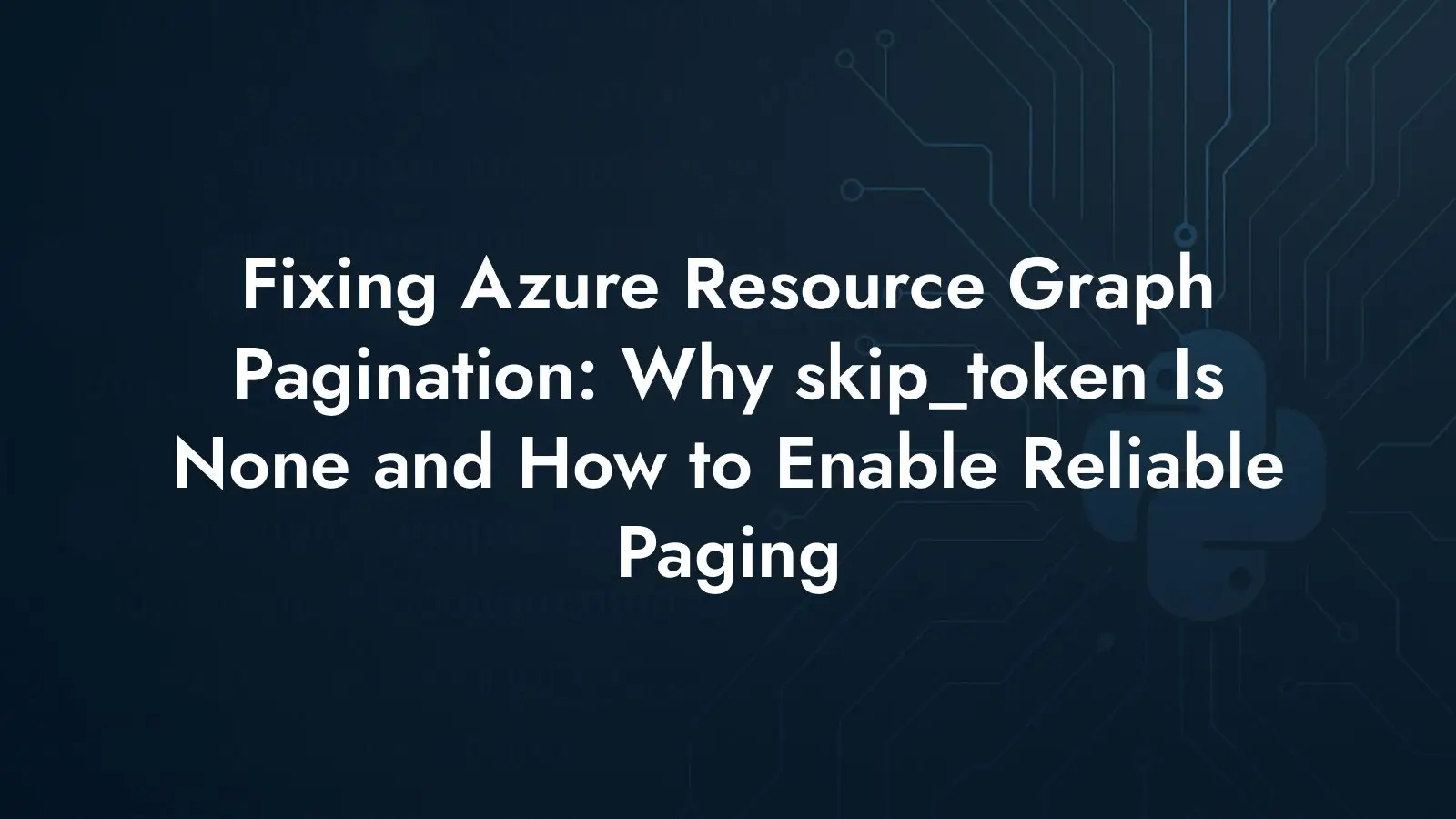 Azure Resource Graph pagination can be deceptively tricky: you run a query, get a large result set, but the skip_token is always empty. Without a skip_token, you can’t page through results using the server-provided continuation token, which makes it impossible to fetch everything reliably.