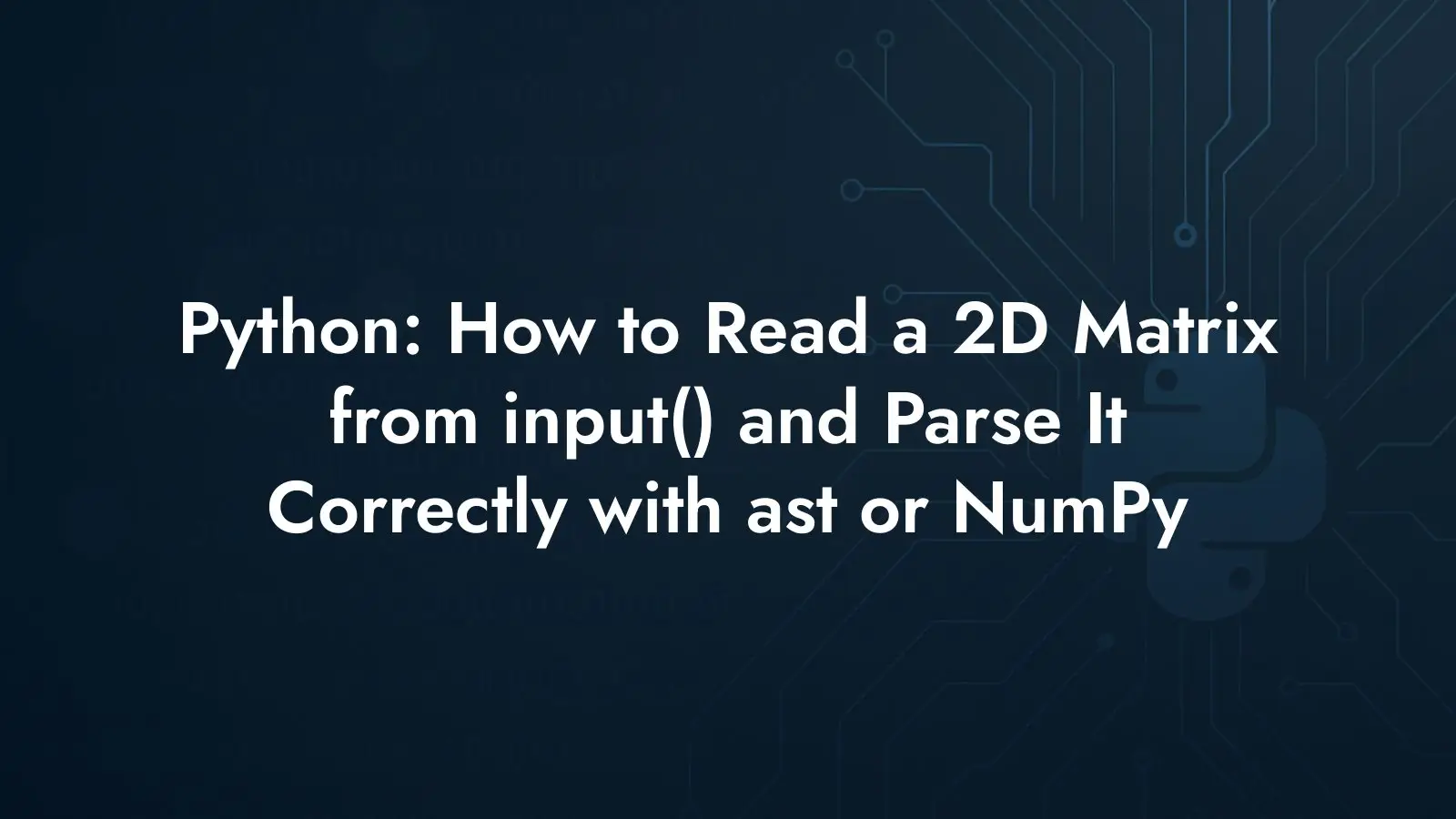 Learn how to read a 2D matrix from input() in Python: parse list-of-lists with ast.literal_eval or accept row/col text for NumPy. Avoid list(input()) pitfalls.