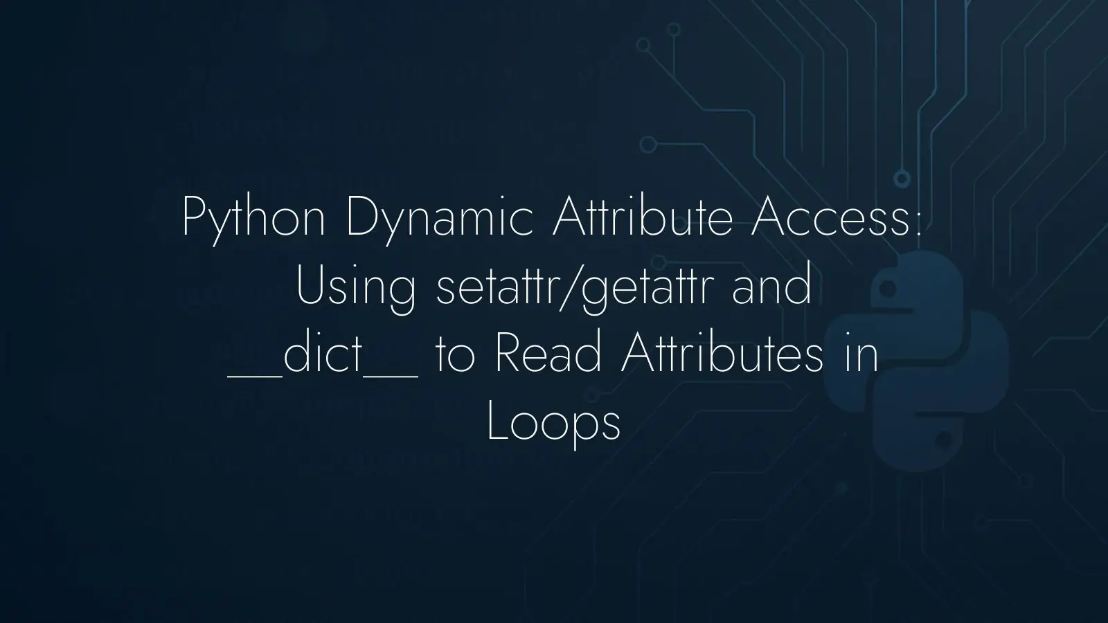 When you create attributes dynamically, direct dot access with a static identifier won’t reflect the variable you computed in the loop. Name-based access keeps the code honest: you set by name, you read by name. In many designs, a dedicated dict-backed property bag inside the class is the cleanest way to model this pattern, and in some cases using a plain dict instead of attributes is the simpler route.