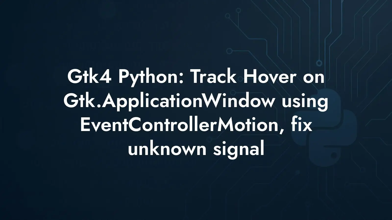 If you need hover behavior on a Gtk.ApplicationWindow in Gtk4 with Python, don’t connect enter-notify-event or leave-notify-event directly to the window. Create a Gtk.EventControllerMotion instance, connect to its enter and leave signals, add the controller to the window, and make sure your handlers accept the controller object and any parameters the signal provides. With that in place, toggling UI state on pointer entry and exit becomes straightforward and predictable.