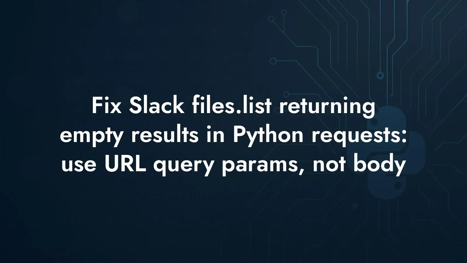 Troubleshoot Slack API files.list empty results in Python requests. See why body data fails, use params with URL query parameters, and match Postman responses.