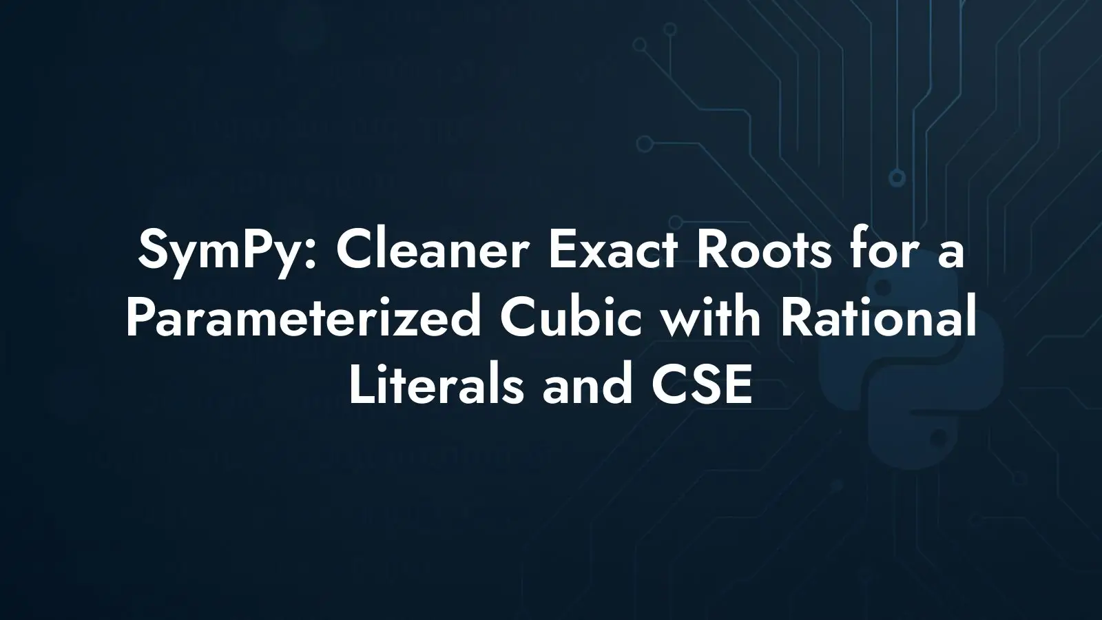 SymPy returns an exact but sprawling expression when you solve a parameterized cubic. The bulk comes from repeated fractional parts and the structure of the cubic formula itself. If you try to coerce that output with a single Rational(...) call, you’ll hit a type error rather than a cleaner form. Below is a compact walkthrough of why this happens and how to get a more readable symbolic result without changing the math.