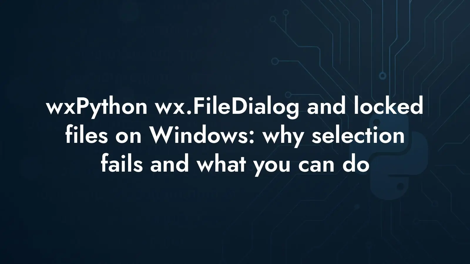 Sometimes you just need the path to an existing file and have no intention of opening it. With wxPython this sounds straightforward, until a different application has the file locked. On Windows, that turns a simple pick into a hard stop in the native dialog, even if you only want the name. Here’s a minimal example that reproduces the issue.