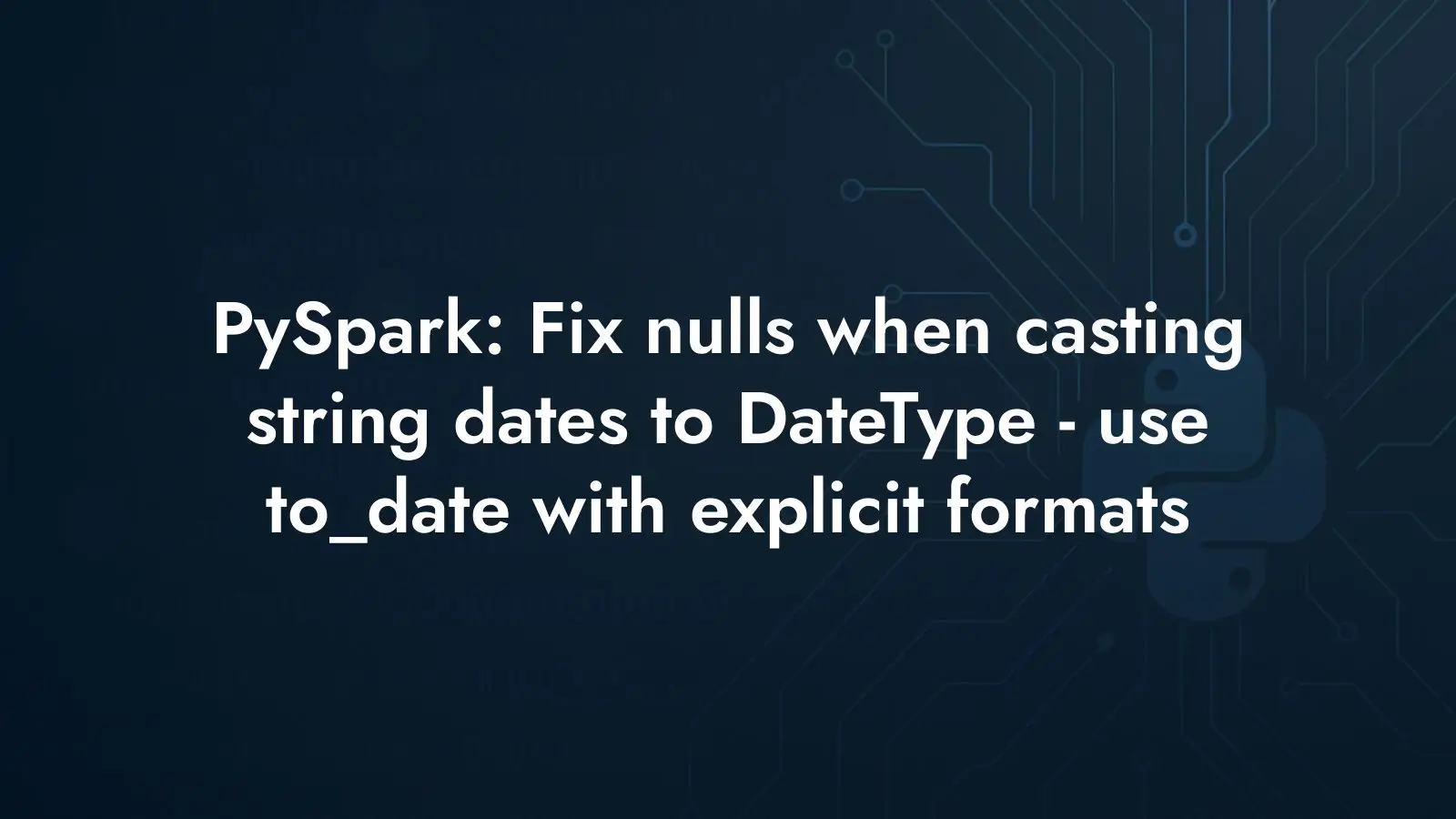 Learn why PySpark cast(DateType) turns non-ISO string dates into nulls and how to fix it using to_date with explicit formats. Prevent data loss in mixed data.
