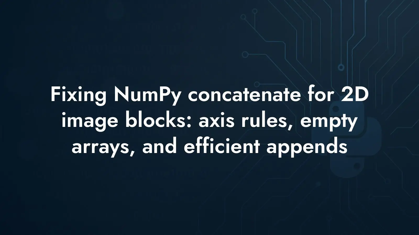 Building a 2D NumPy array by incrementally appending image blocks sounds straightforward until axis rules and shapes step in. If you need to accumulate greyscale image data as 28×28 chunks and keep everything in a single array, the way you initialize the array and call concatenate determines whether the code works or fails with type and shape errors.