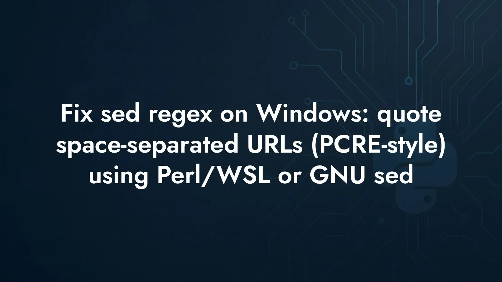 Learn why sed on Windows fails with PCRE-style regex and how to quote space-separated URLs reliably using a Perl one-liner or GNU sed. Avoid POSIX pitfalls.