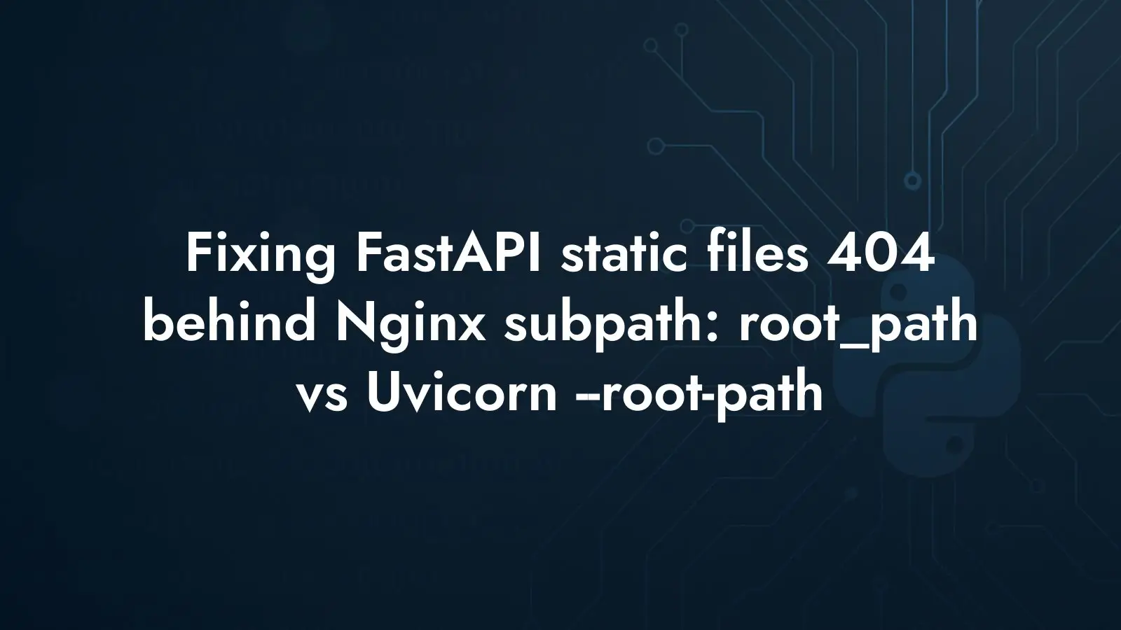 If static assets 404 only when the app is served under a subpath, first check the effective URL of mounts. Avoid setting root_path in the FastAPI constructor when using mounted routes; prefer the server’s --root-path. With Nginx, a straightforward proxy of the subpath is sufficient once the server knows the correct root path. Track the upstream Starlette discussion for changes that may alter this behavior over time.