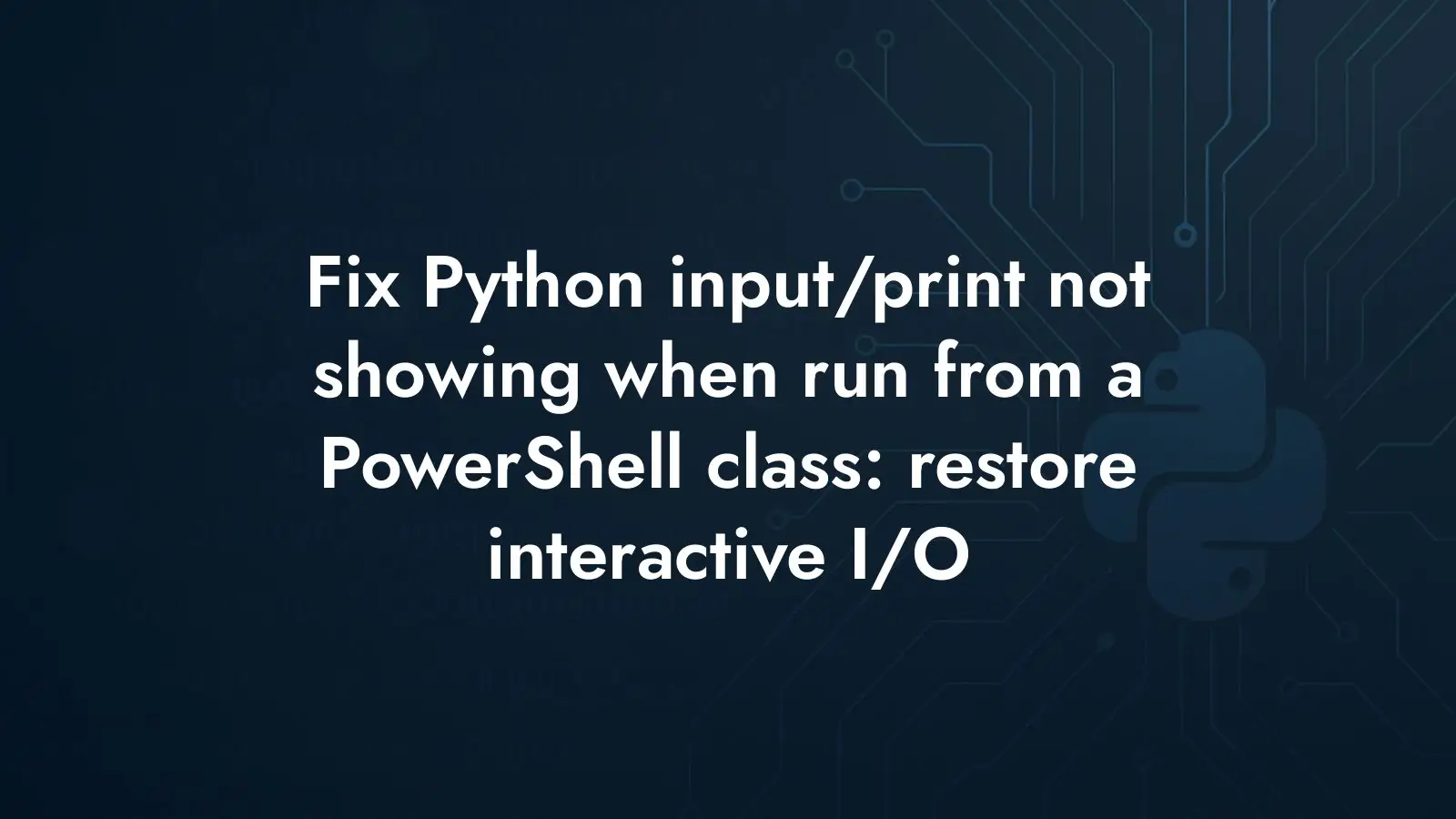 When a Python script that relies on input() and print() is launched directly from PowerShell, the prompt and the echoed response show up as expected. But the moment the same script is invoked inside a PowerShell class method, the interactivity appears to vanish: the Python process still runs, accepts input, and exits, yet nothing visible is printed to the console. Below is a minimal reproduction and several practical ways to regain interactive behavior without changing the underlying program logic.