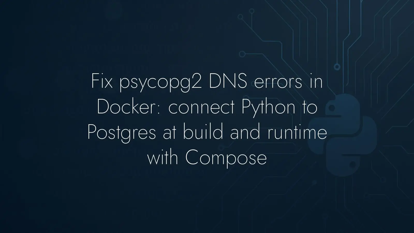 Connecting a Python service to Postgres inside Docker should be routine, yet it’s easy to get tripped up by where the code actually runs. A common symptom looks like a DNS problem from psycopg2: the service name works at runtime, but fails during image build and tests. Below is a concise walkthrough of the failure mode and a working pattern to fix it without guesswork.