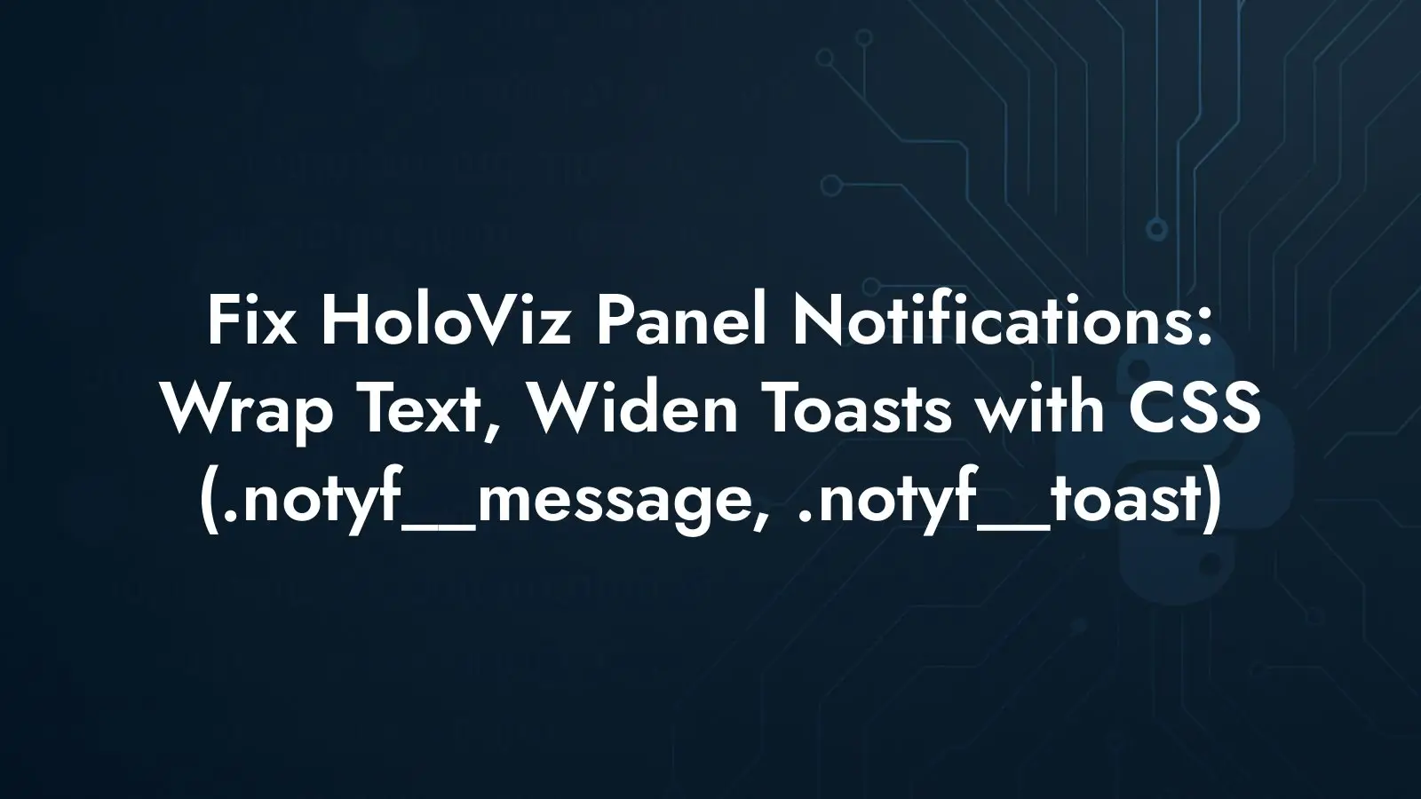 Fix HoloViz Panel notifications that cut text: wrap messages and widen toasts via the right CSS selectors (.notyf__message, .notyf__toast). Details inside.