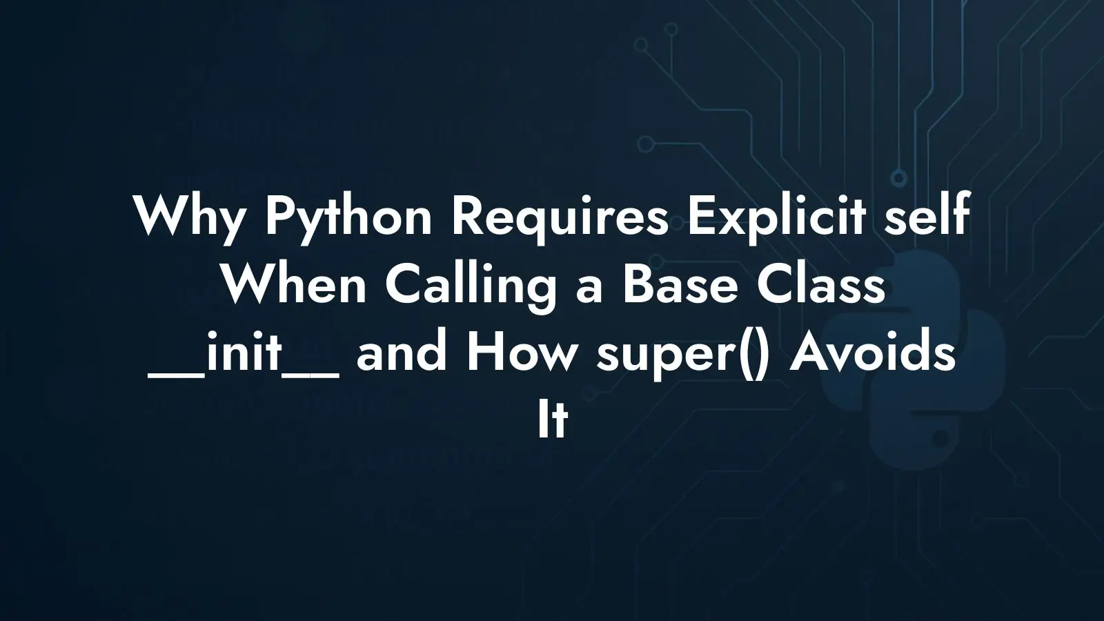 Learn why calling Base.__init__() in Python needs explicit self, how super() auto-injects it, and how to fix TypeError: missing self with clear examples.