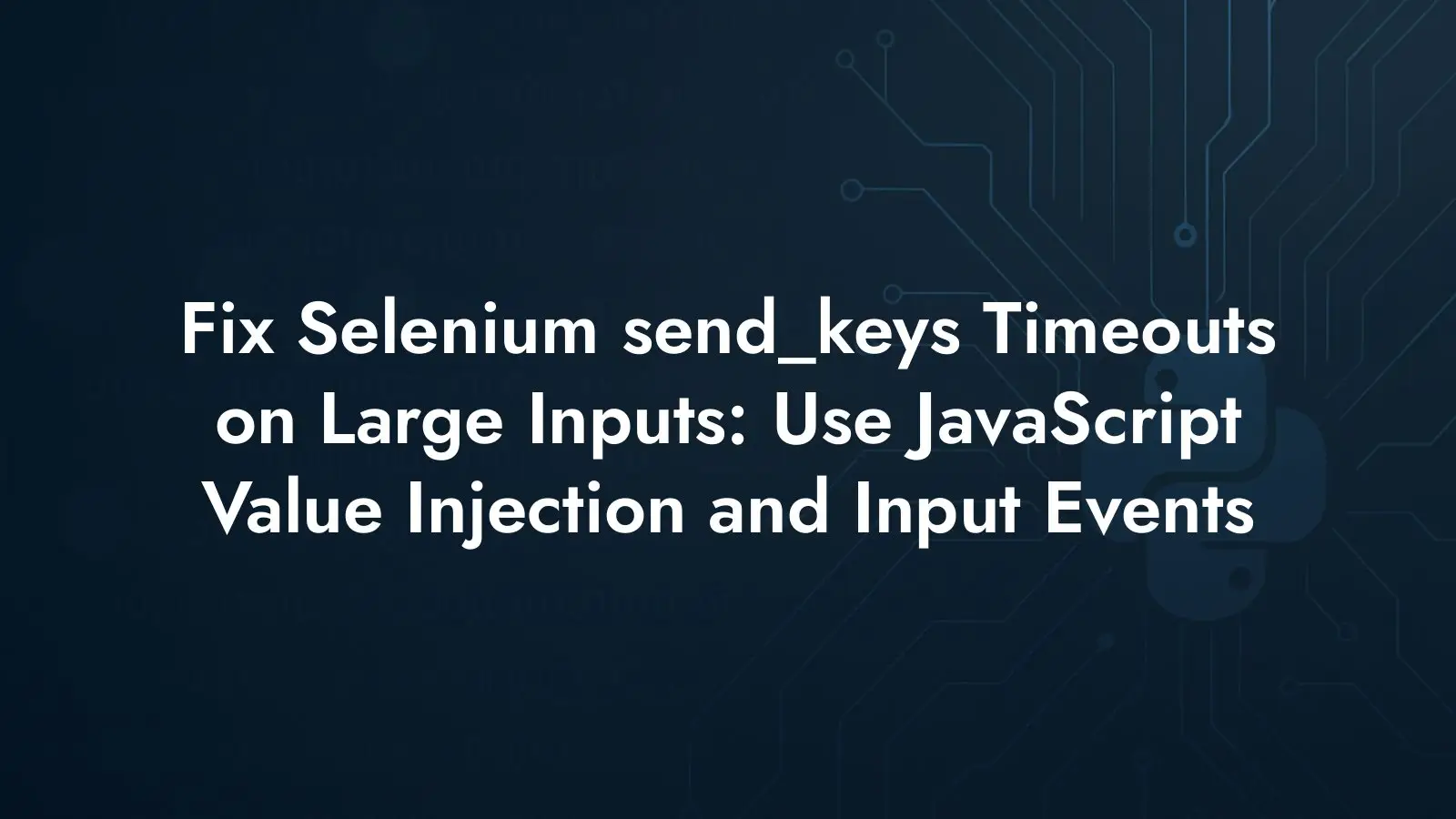 Large payloads through send_keys don’t scale. Switching to JavaScript value assignment avoids UI thread thrash from thousands of key events and prevents 120-second timeouts that appear only at scale. Manually dispatching an input event keeps downstream UI logic intact, so validations, button states, and any data binding continue to work as if a user pasted the text.