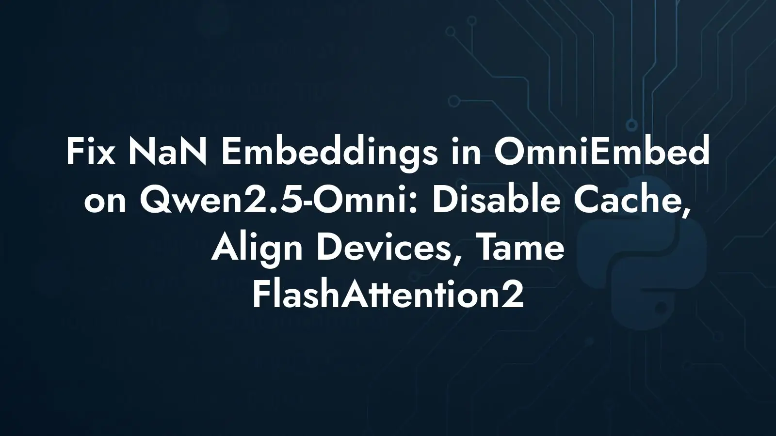 When you need multimodal embeddings from OmniEmbed on Qwen2.5-Omni, avoid the generation cache, push every tensor from the processor onto the model’s device, and prefer a stable attention implementation if FlashAttention2 still misbehaves. These adjustments keep the embedding flow deterministic for both images and videos and help you sidestep NaN surprises.