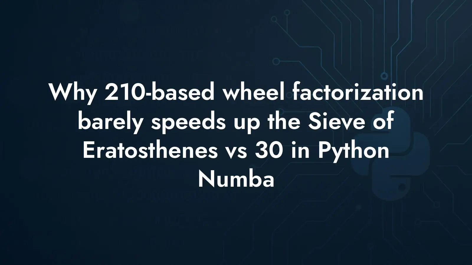 Wheel factorization looks like an easy win on top of the classic Sieve of Eratosthenes: if you skip non-coprime residues, you shrink the search space dramatically. Moving from a 30-based wheel to a 210-based wheel cuts candidates further, so you might expect a meaningful speedup. Yet benchmarks show almost no improvement and sometimes a slight slowdown. Let’s break down why that happens, what exactly the code is doing, and where the time actually goes.