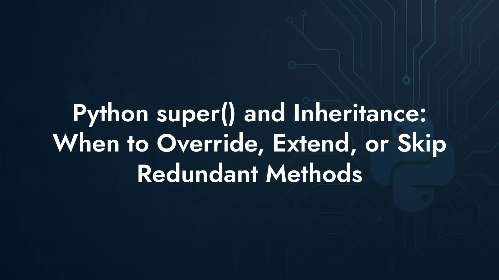 Learn when to use super() in Python inheritance: avoid redundant overrides, extend base methods with clear, maintainable class hierarchies and consistent APIs.