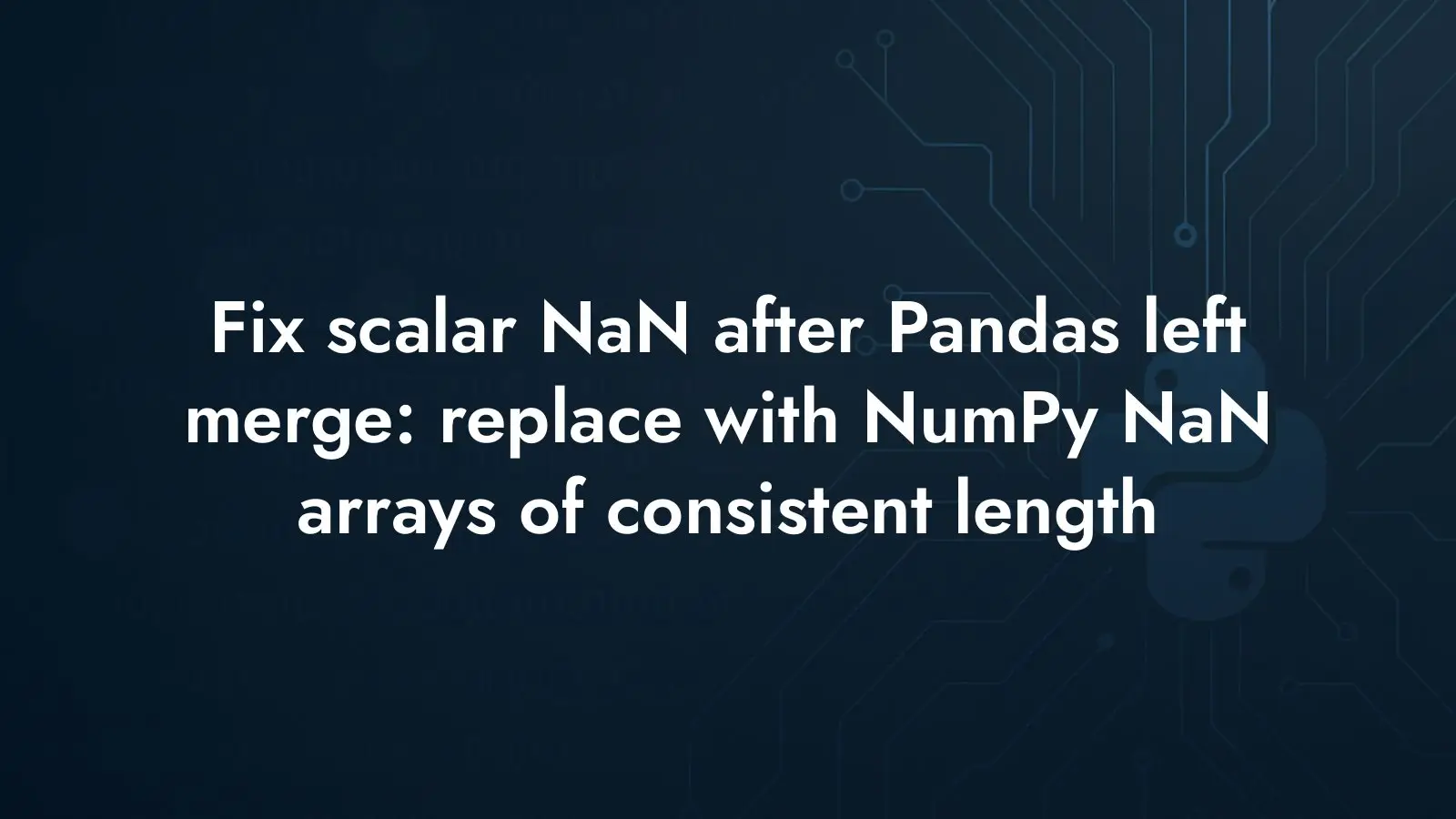 When you merge two Pandas DataFrames and one of the columns contains numpy arrays, missing matches in a left join turn into scalar NaN. If downstream logic expects arrays of a fixed length, those scalar NaNs break everything. The goal is to replace those scalar NaNs with a numpy array of NaN values of the same length as the arrays already present in the column.