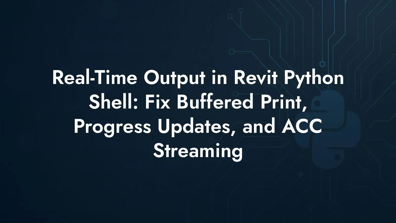 Real-time feedback matters when you automate in Revit. If you rely on Revit Python Shell (RPS) and notice that print output appears only after a long-running loop completes, you are likely running into output buffering. For progress reporting, status updates, or streaming results from an external tool like AcCoreConsole (ACC), that default behavior gets in the way.