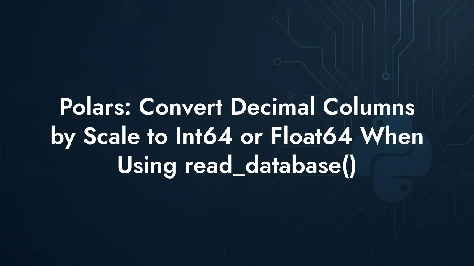Learn how to cast Polars Decimal columns by scale after read_database(): scale 0 to Int64, above zero to Float64. Schema-driven, reliable; no manual lists.