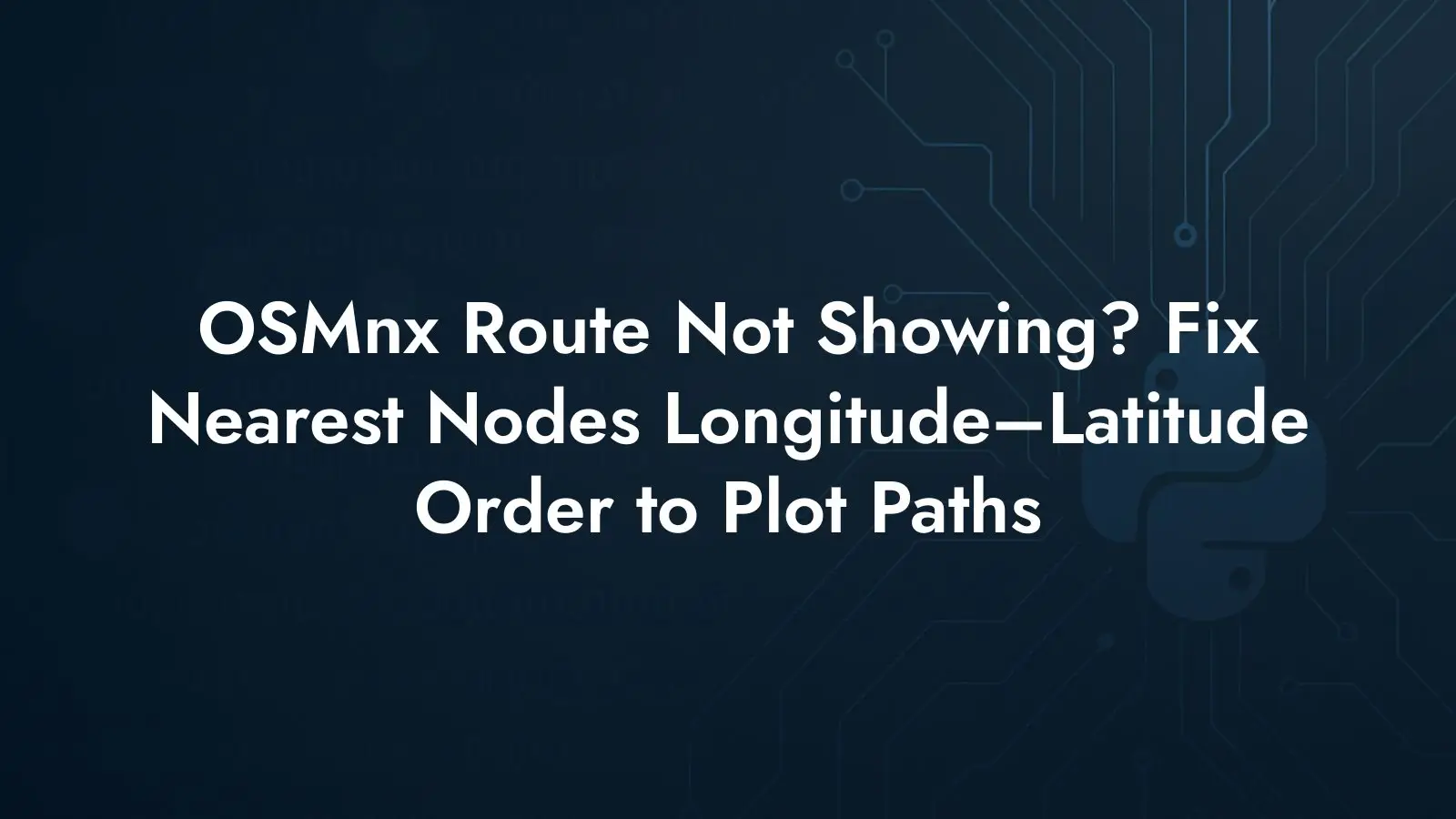 When you compute a driving route with OSMnx, the map renders but the red line never appears. The graph is there, the window opens, yet the route seems to be missing. In most cases like this, the issue isn’t in pathfinding at all—it’s the order of coordinates passed to the nearest-nodes lookup.